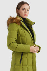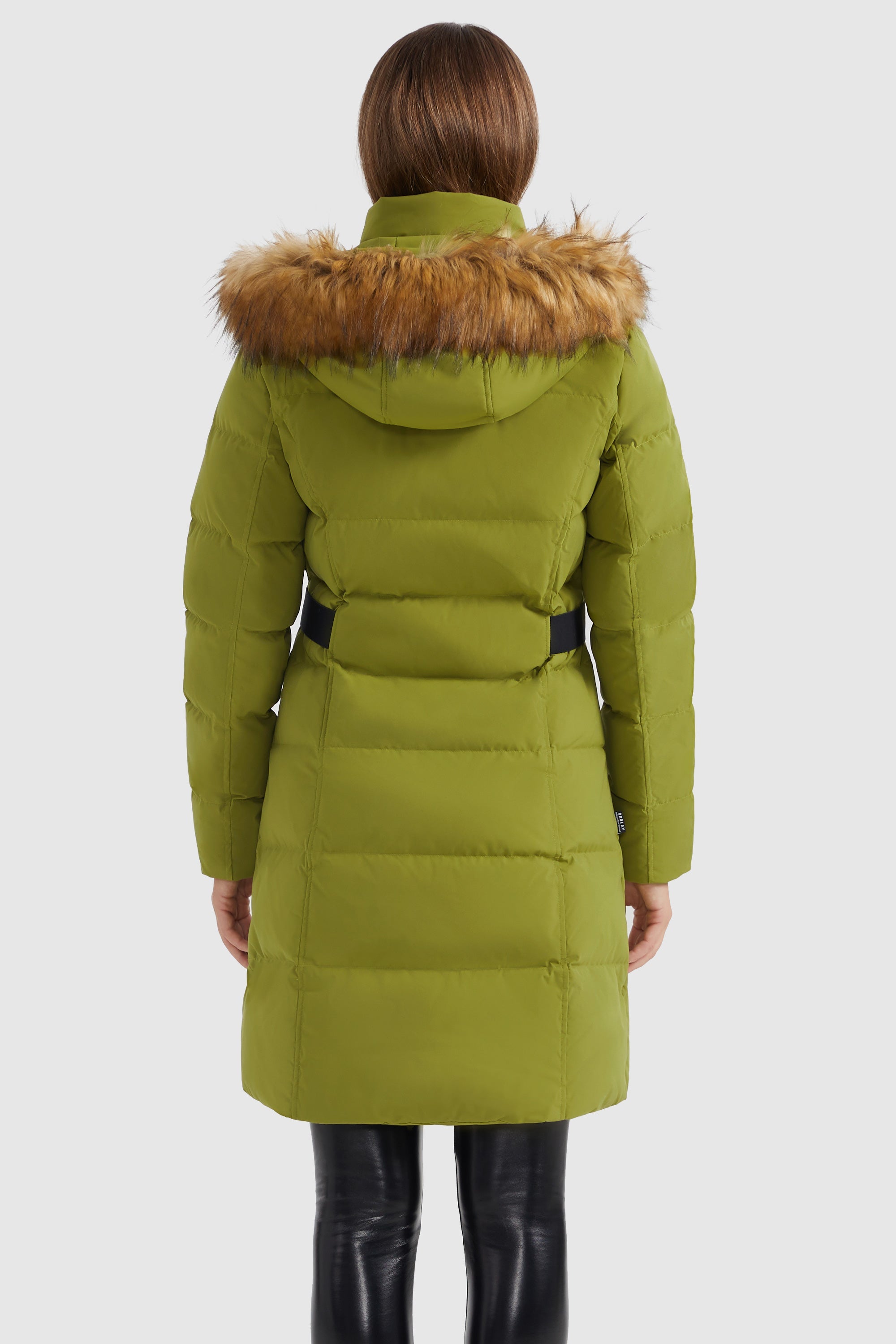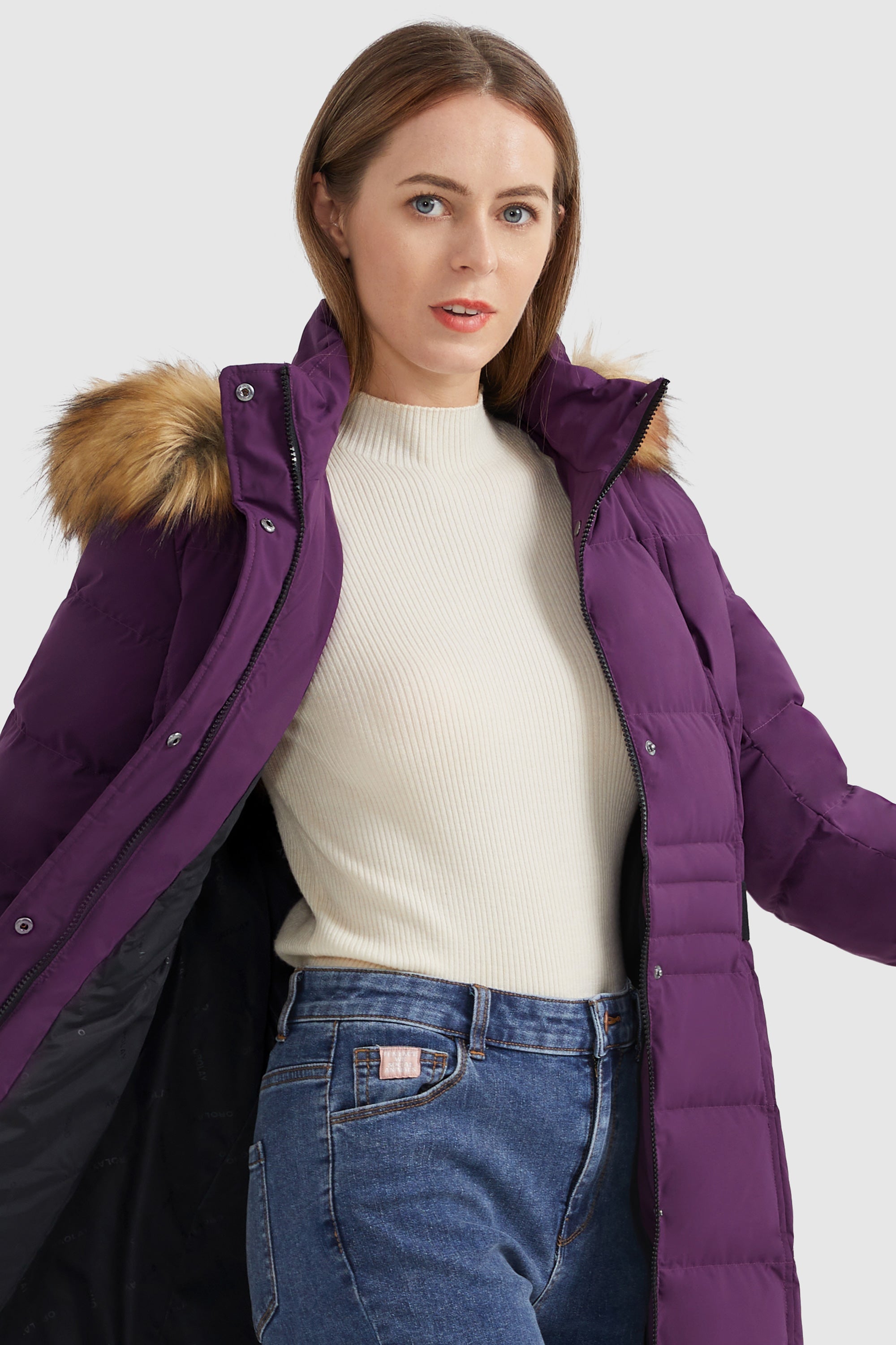 Solid Faux Fur Trim Hood Puffer Down Coat